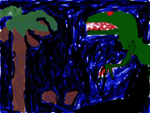 Click on the dinosaur's mouth, throat, and the coconut to see more.